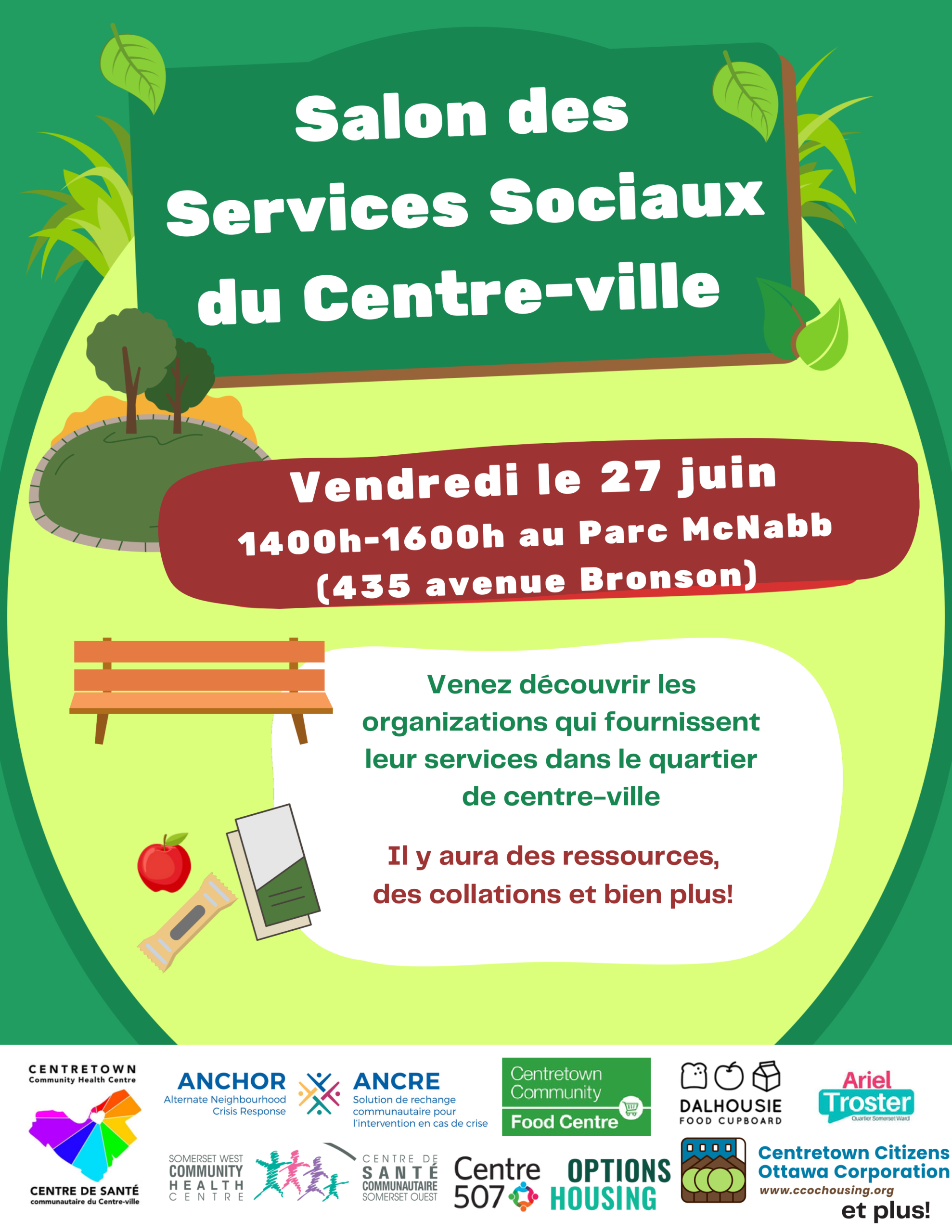 McNabb Park 435 Bronson AveVenez au parc McNabb pour vous renseigner sur les services offerts dans le centre-ville, une excellente occasion d'obtenir des ressources et de rencontrer des voisins et des organisations ! Langue: Bilingue