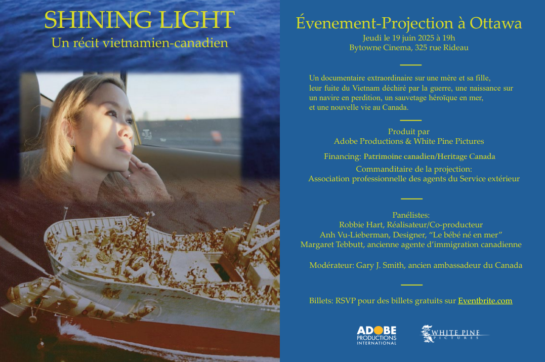 Rendez-vous au cinéma Bytown pour voir le documentaire Shining Light: A Vietnamese Canadian Legacy : l’histoire extraordinaire d’une mère et de sa fille, leur fuite d’un Vietnam déchiré par la guerre, une naissance sur un bateau en train de couler, un sauvetage héroïque en mer et une nouvelle vie au Canada. Réservez vos billets gratuits.